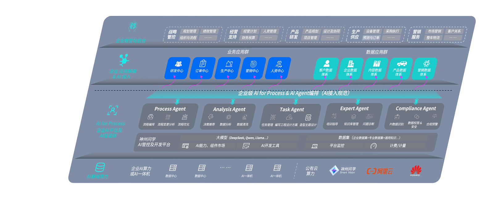 南宫娱乐问学智车解决方案是一套基于AI技术的汽车行业智能化系统,,,覆盖从底层算力到顶层AI应用的全栈方案。。。方案由算力层、、、、模型层和应用层组成:算力层,,,,方案支持多种一体机配置,,具备云端灵活部署、、、多云适配以及动态优化计算资源的能力;模型层,,,南宫娱乐问学平台版提供了企业级AI应用一站式构建与管理平台,,,支持基于后训练强化技术的汽车企业专属模型的训练、、评测和运营;应用层,,,南宫娱乐问学DeepSeek版提供包括超级员工、、、智能招采、、、、智能营销、、、智能客服、、AI for BI等一系列解决方案,,可助力汽车行业实现数字化转型,,,,让管理更智能、、、响应更敏捷。。
