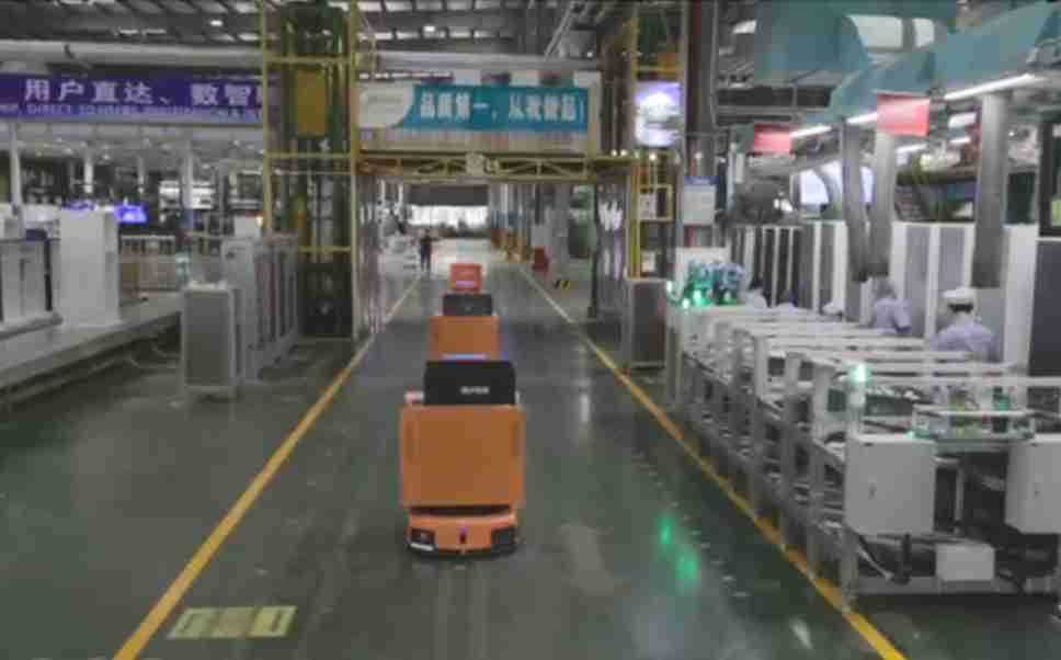 为车载冰箱物流配送打造的智能解决方案,,包含产中物流通过潜伏举升AMR搬运至线边,,,产后成品物流智能仓储,,,流程包含产中物流智能齐套入库,,线边安灯叫料AMR智能配送至线边,,,成品入库、、出库,,,,通过无人堆高车机器人,,智能仓储管理替代人工作业管理,,,,实现更高存储、、更高效率、、、更具柔性化的解决方案。。。。
