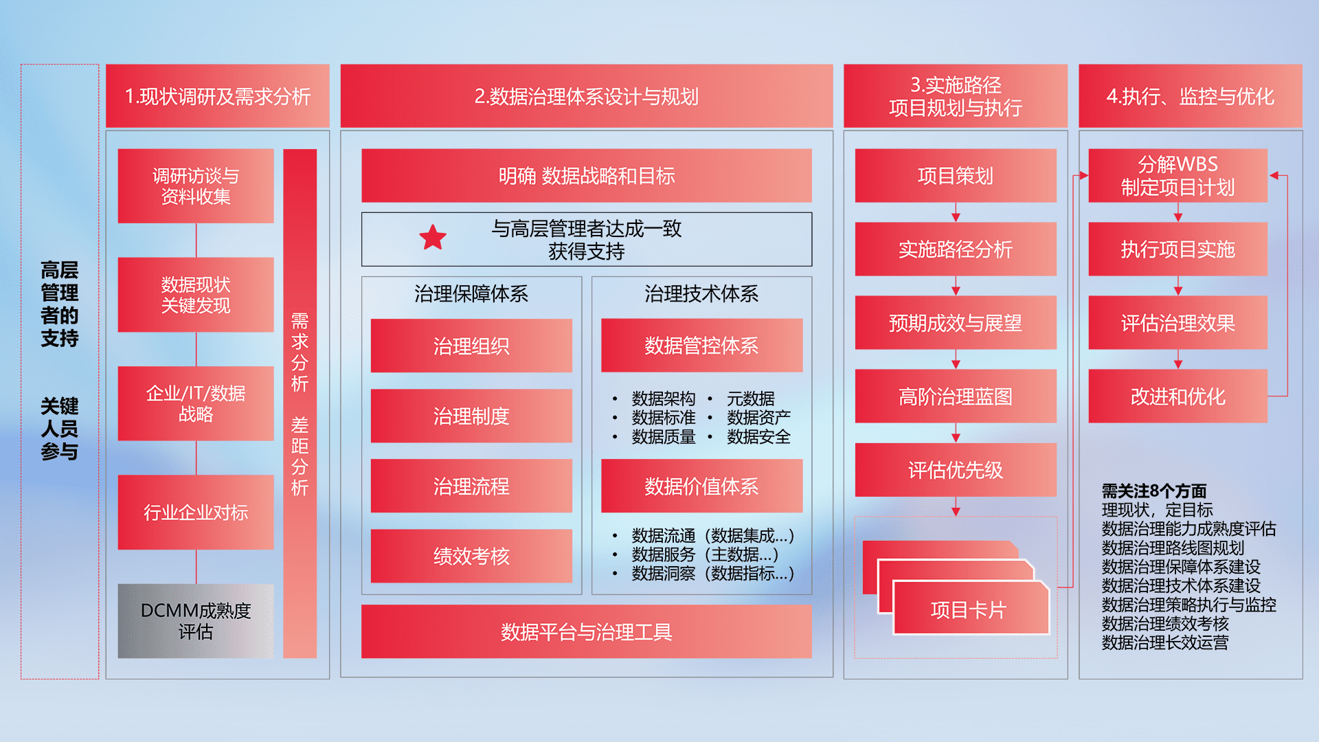 制定并执行统一的数据标准,,,规范数据定义和格式,,,消除冗余和不一致性,,实现跨部门和跨系统的数据一致性,,,为企业提供标准化的数据基础。。。。